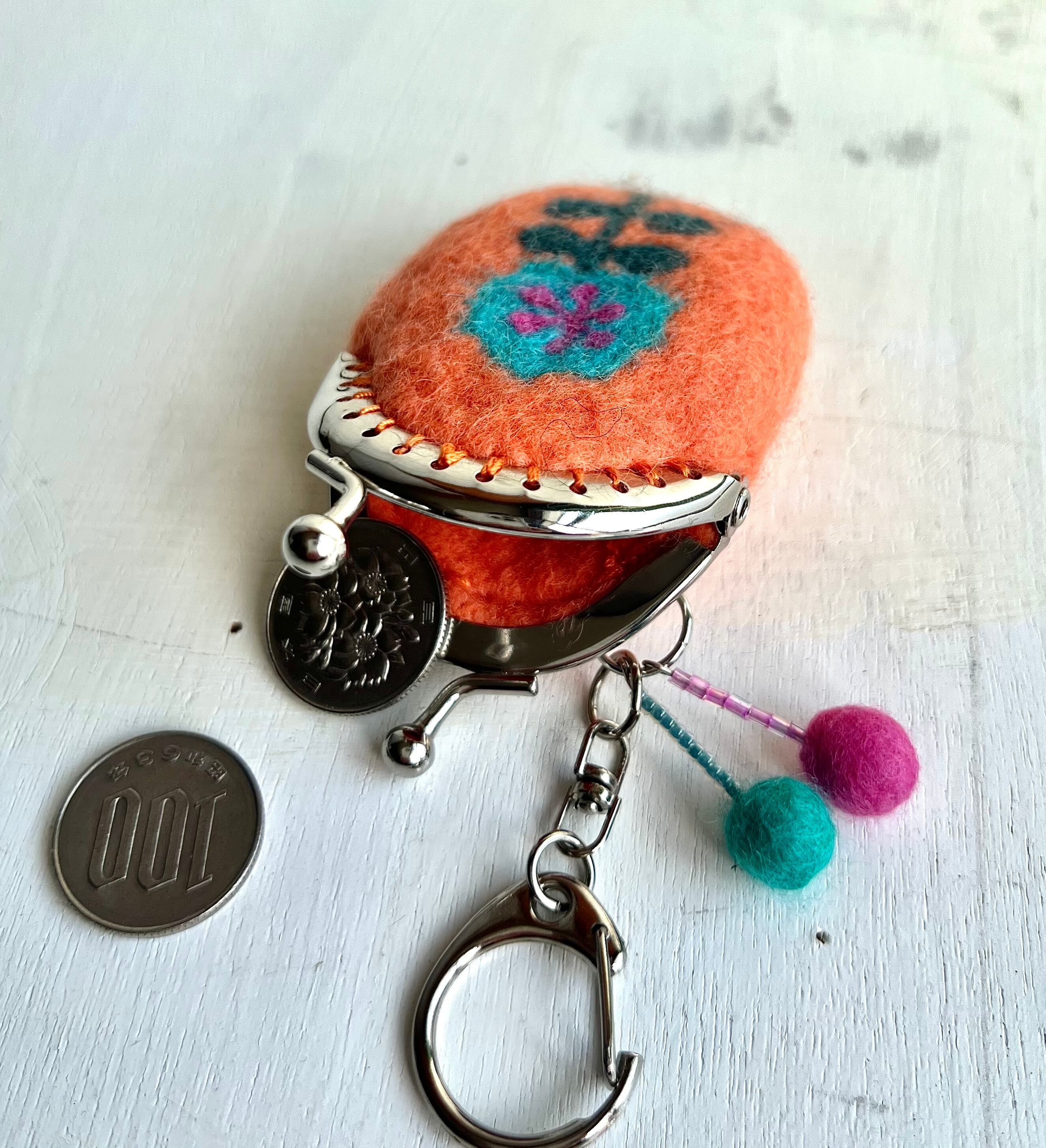 花の羊毛刺繍ミニミニがま口(ブロッサム)