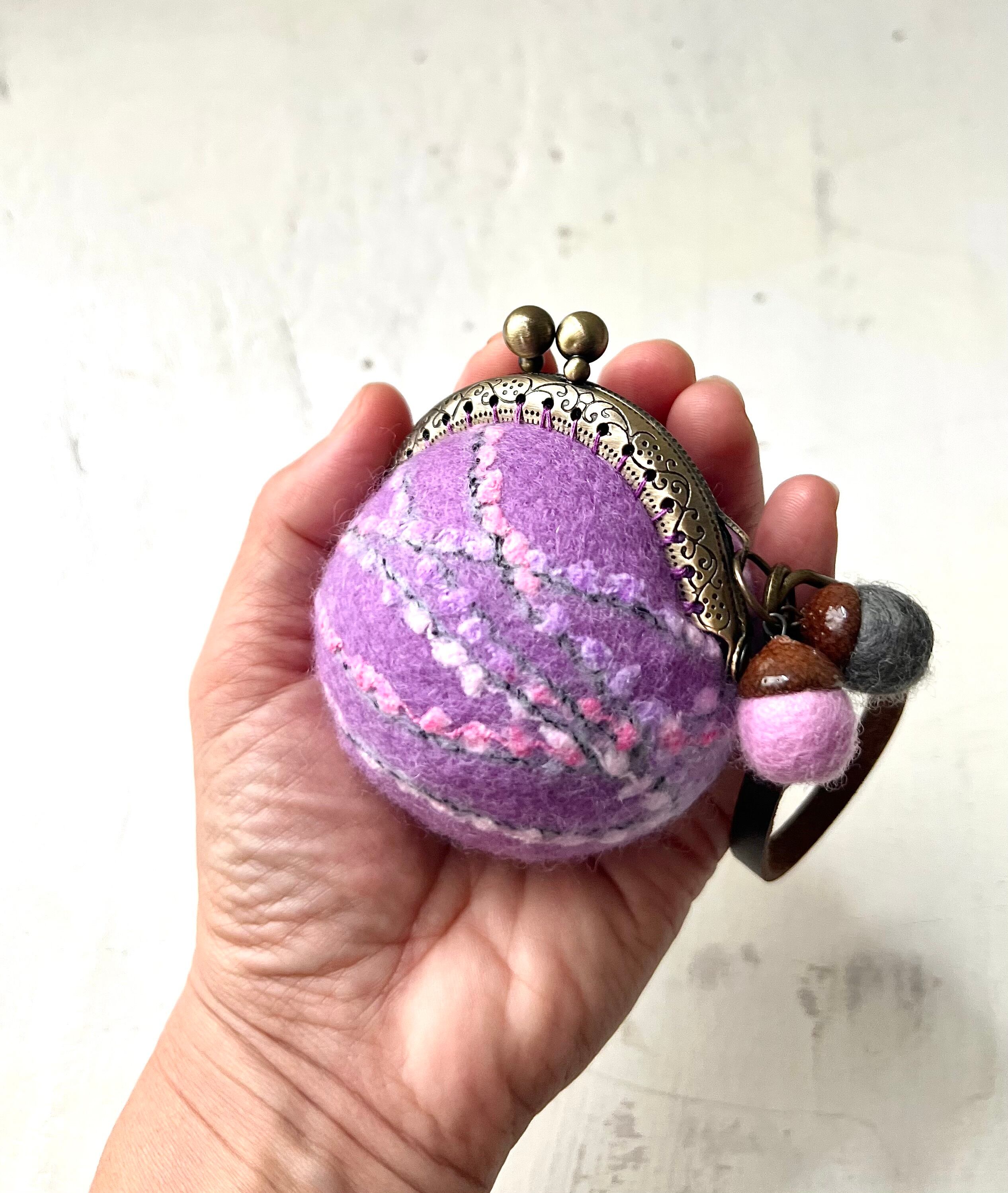 羊毛フェルトのまんまるがま口(ラベンダー)