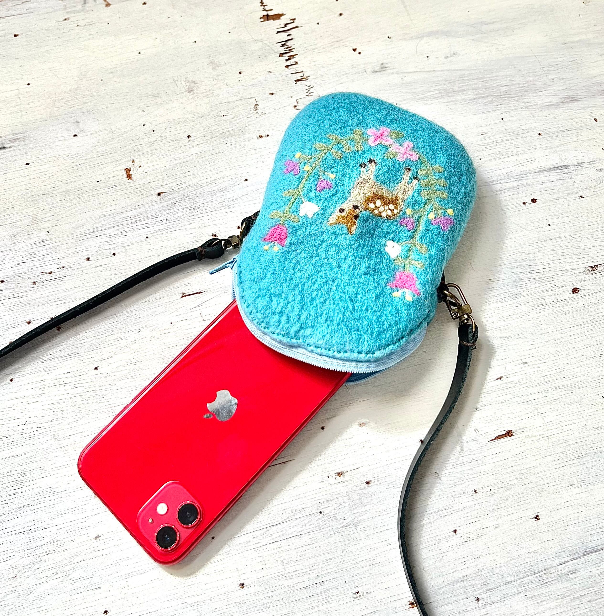 斜め掛けにできるポシェットタイプですので、お洋服の差し色としてよいかと思います。