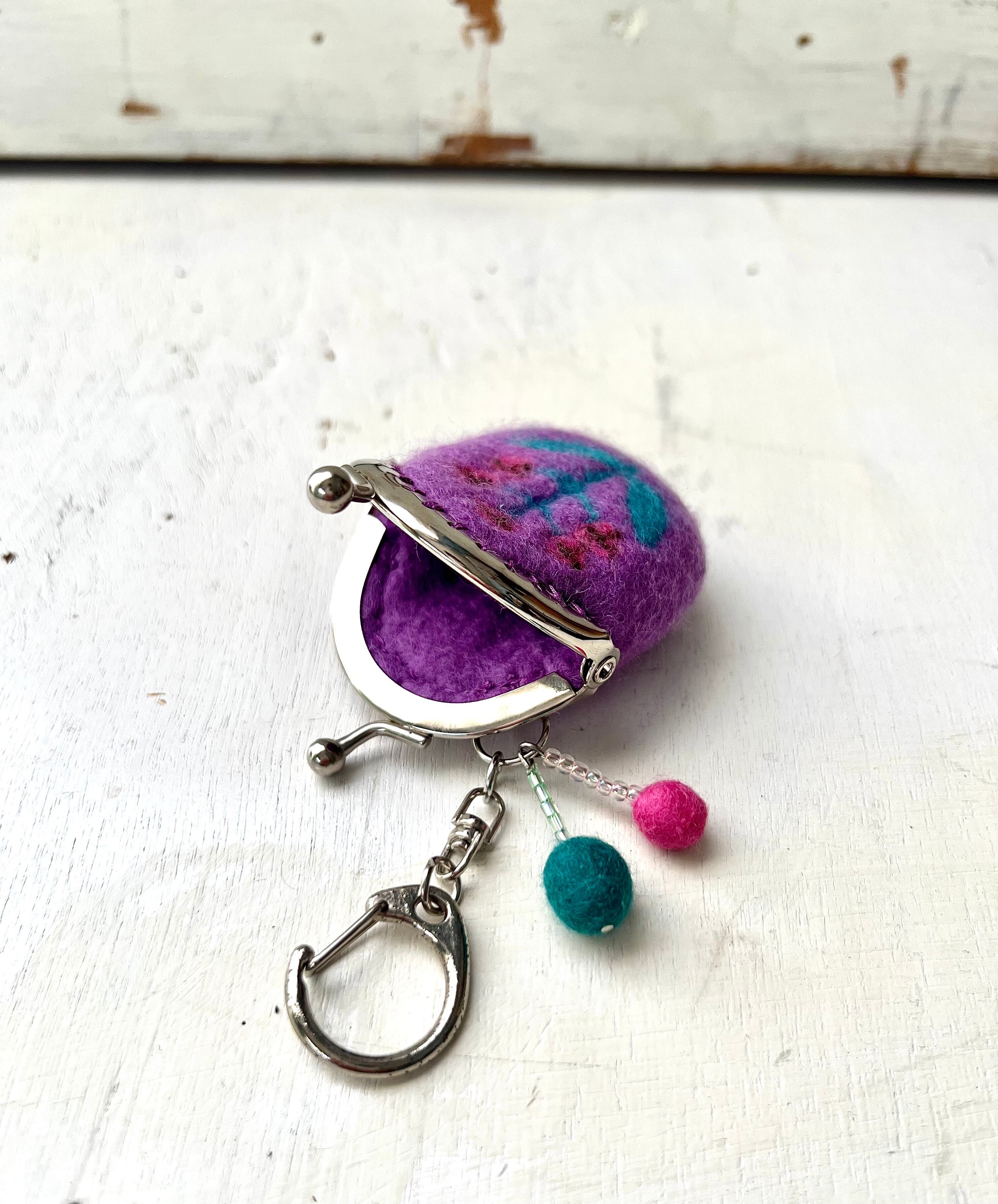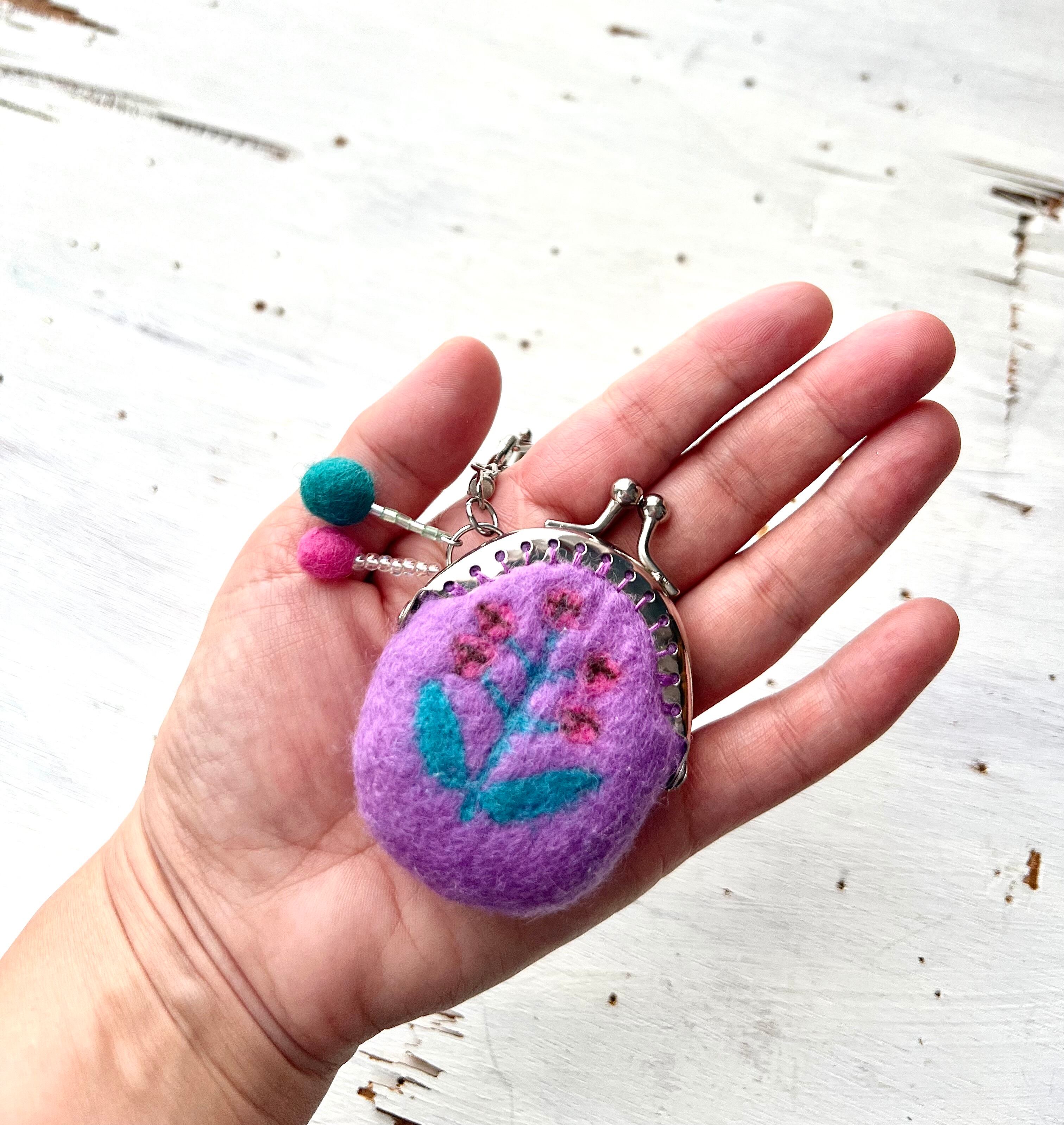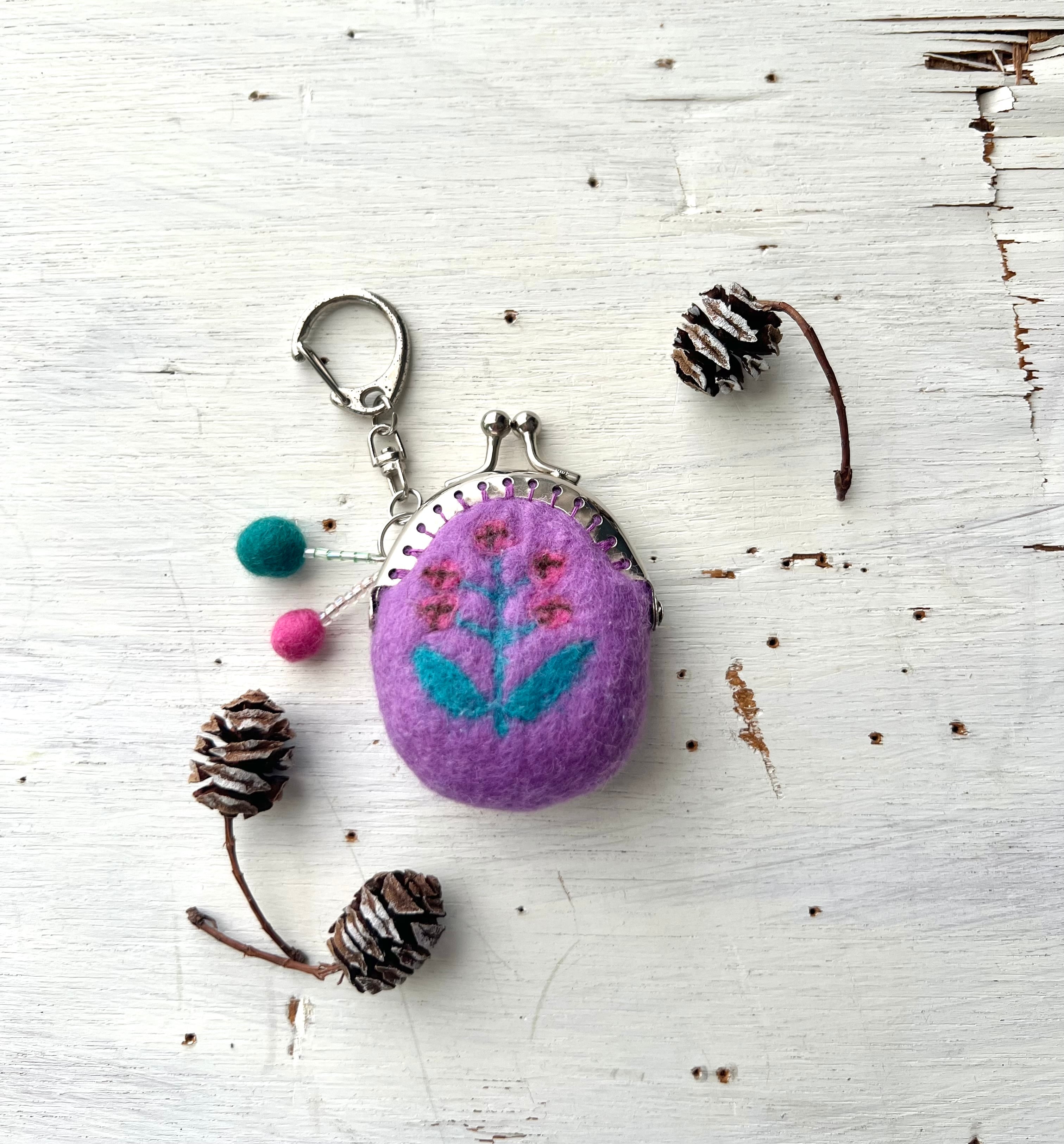 花の羊毛刺繍ミニミニがま口(ラベンダー)