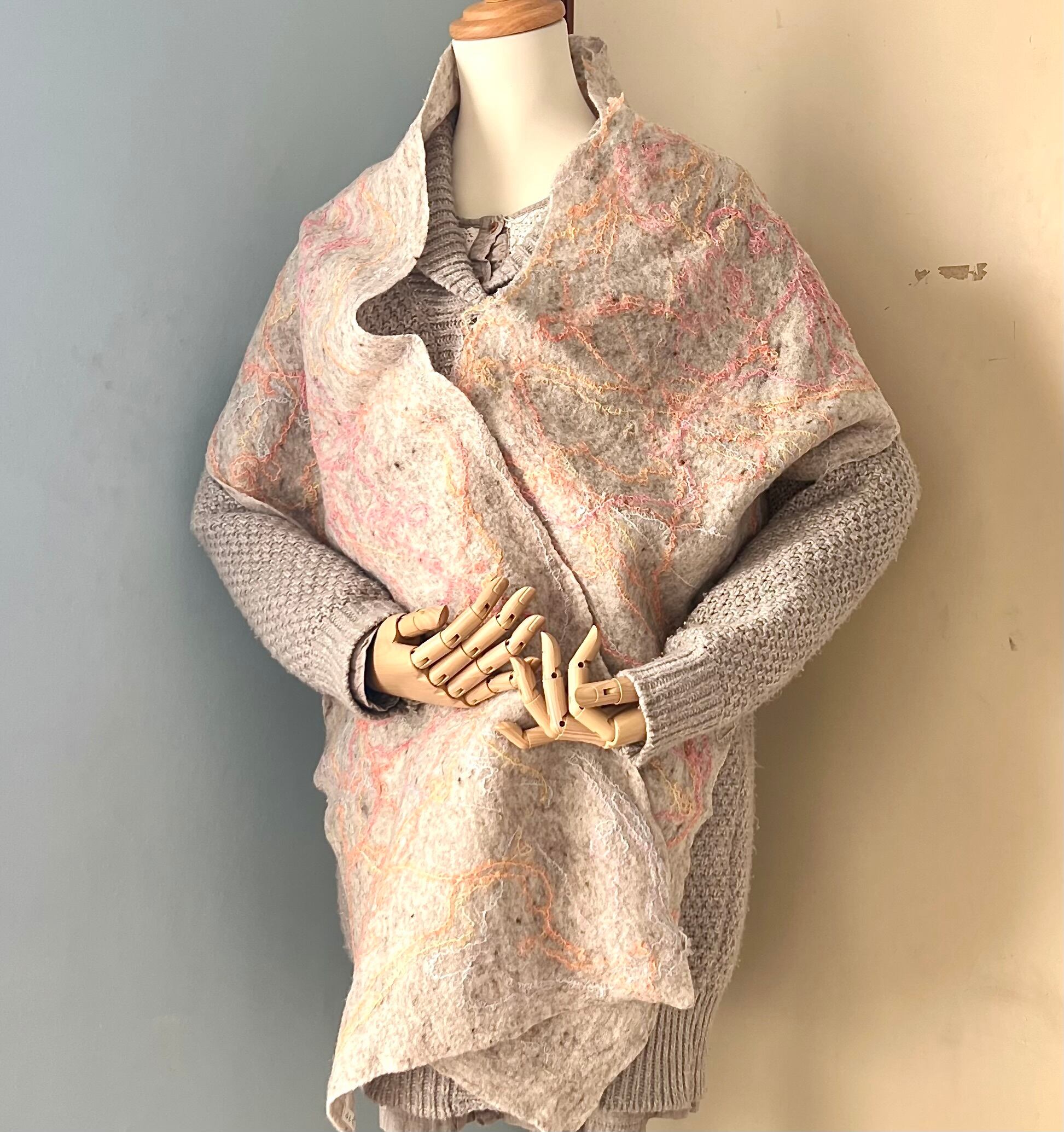 ストール本体は薄手の羊毛フェルトの為軽くて暖かいです。
