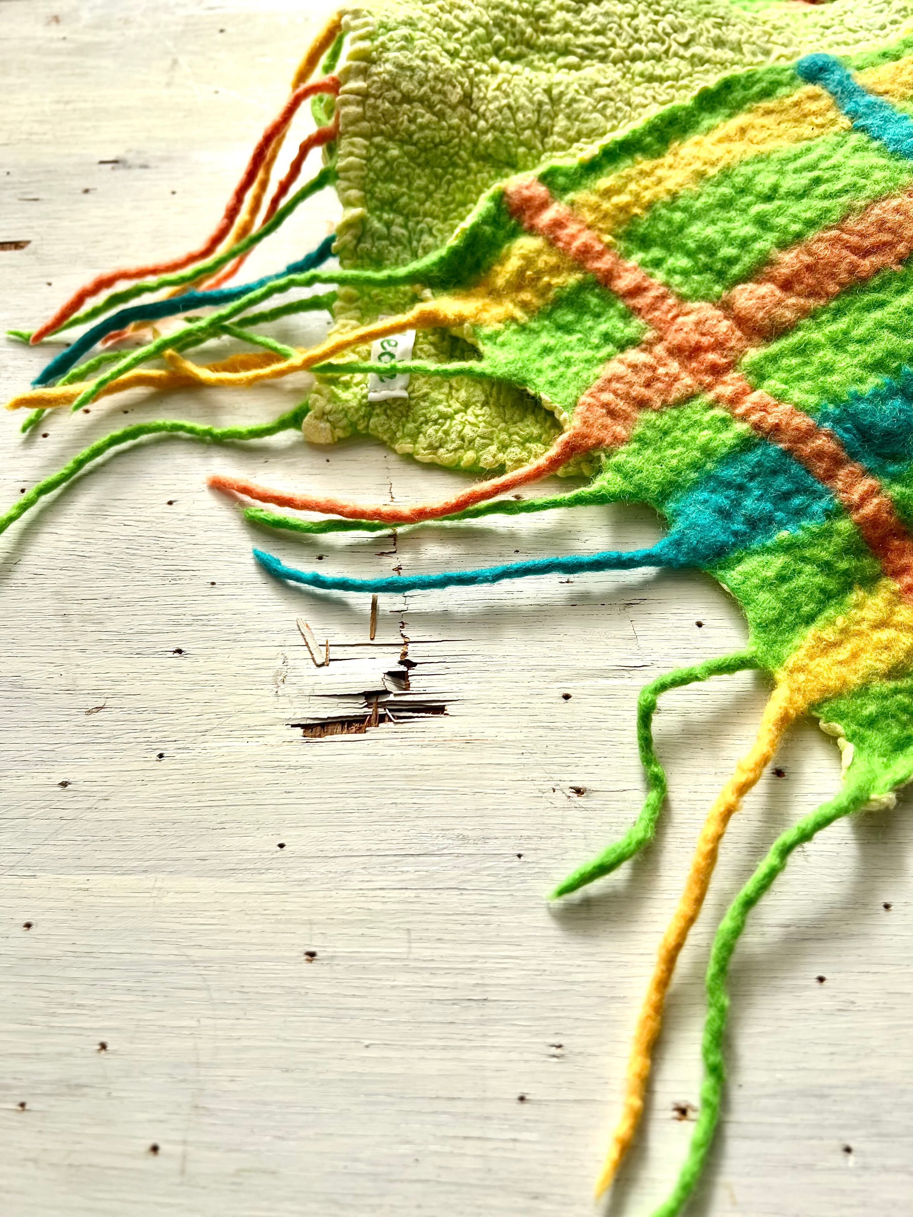 本体:メリノウール、手作業でフェルト化しています。羊毛は化学染料です。