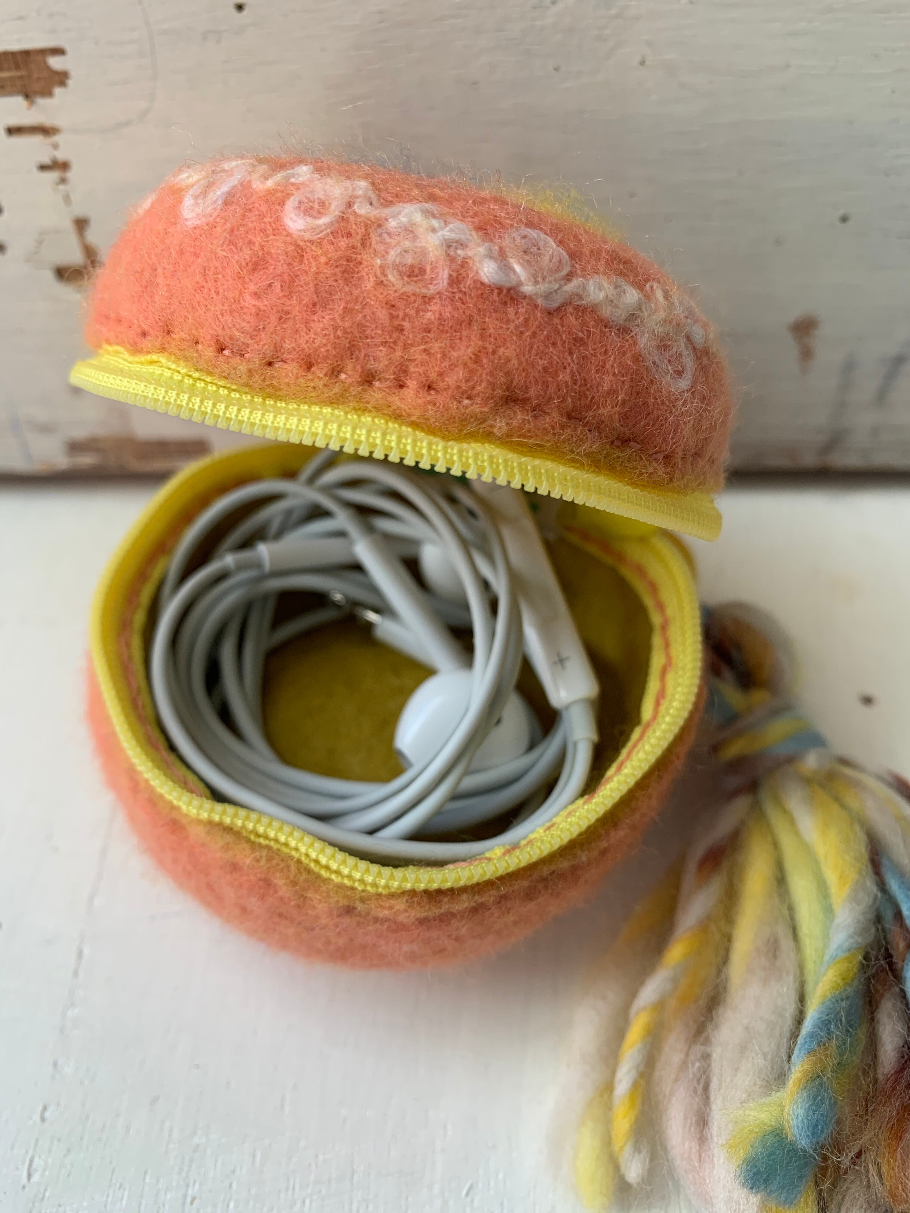 羊毛フェルトのマカロンポーチ(オレンジ)