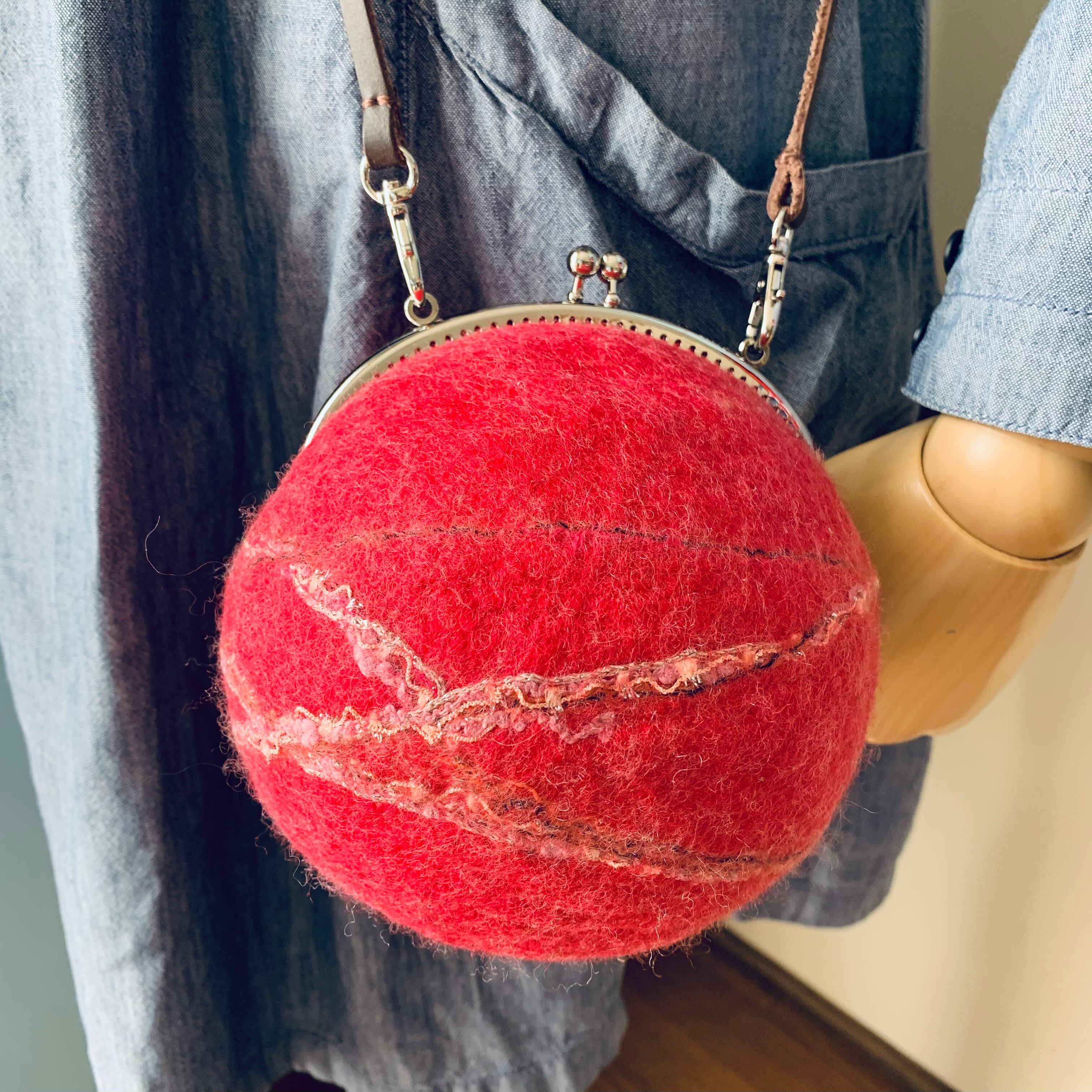 球体の羊毛フエルトがま口で、ポシェットタイプです。