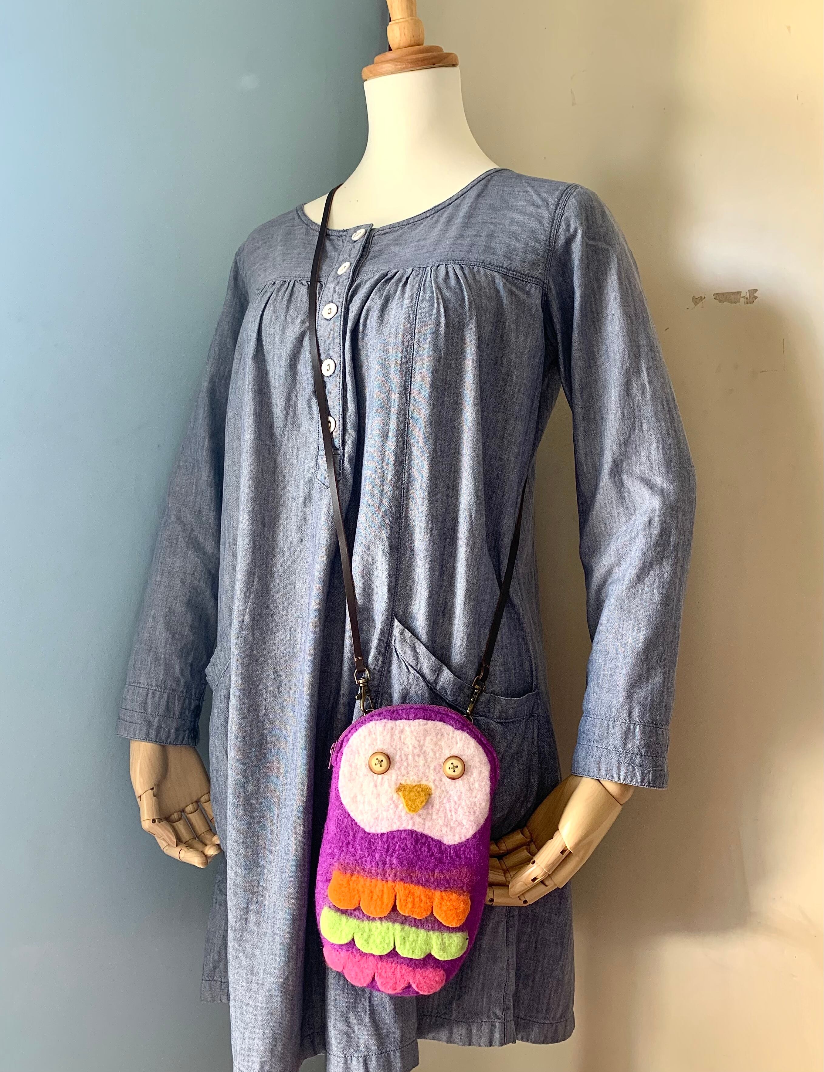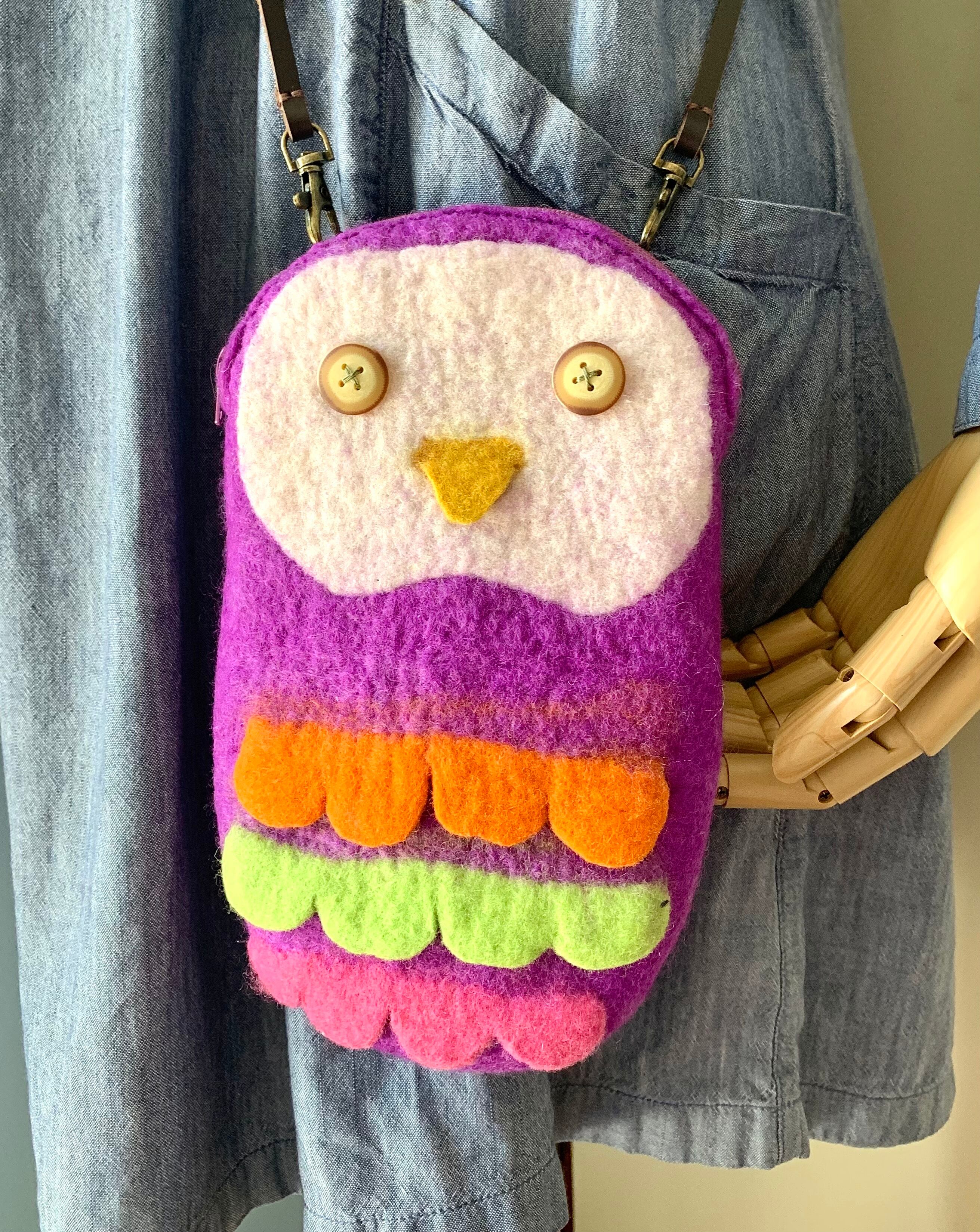 カラフルな動物ポーチ(フクロウ✖️ラベンダー)