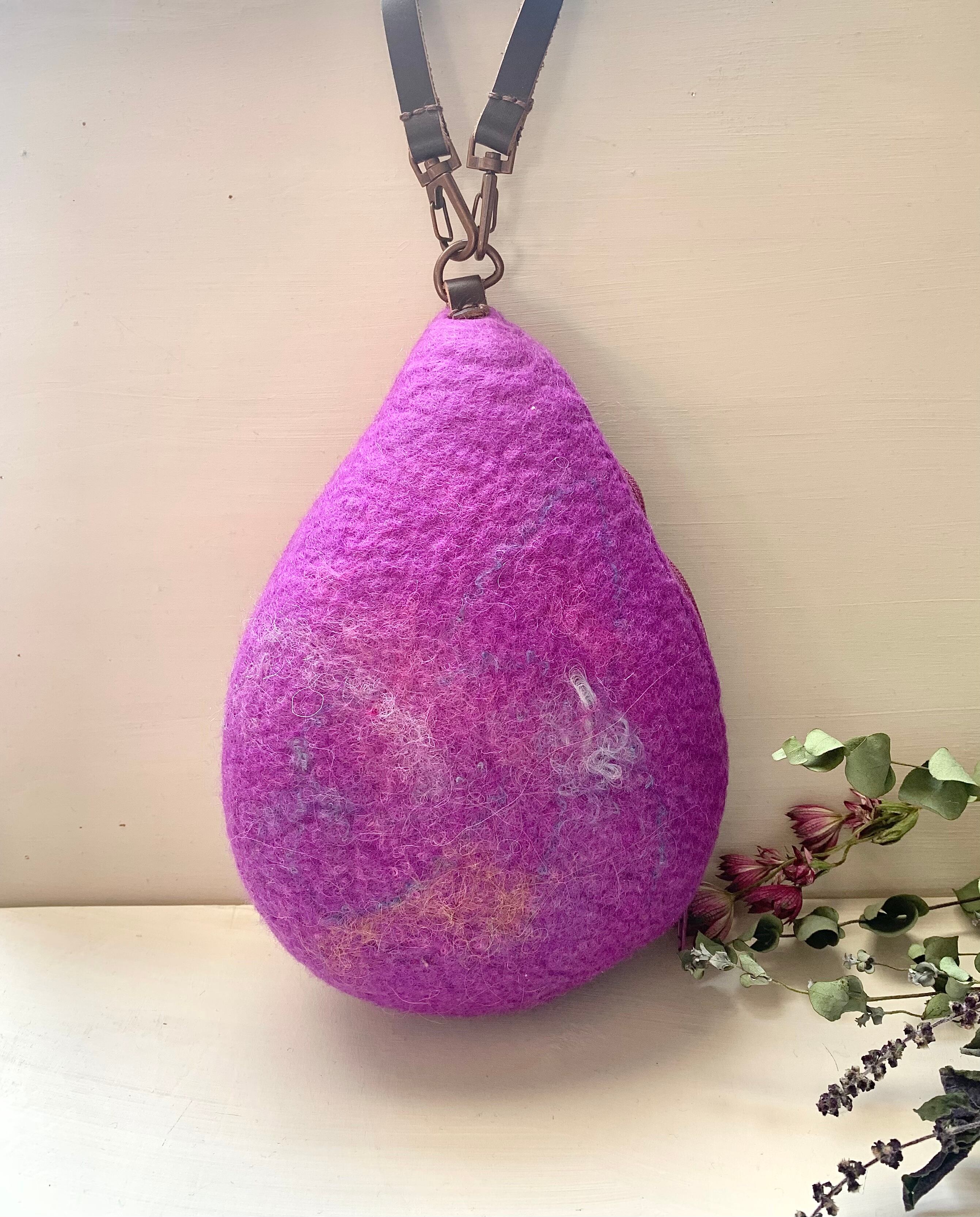 ポシェット本体:羊毛メリノウール100% (羊毛から手作業でフェルト化しています。)
