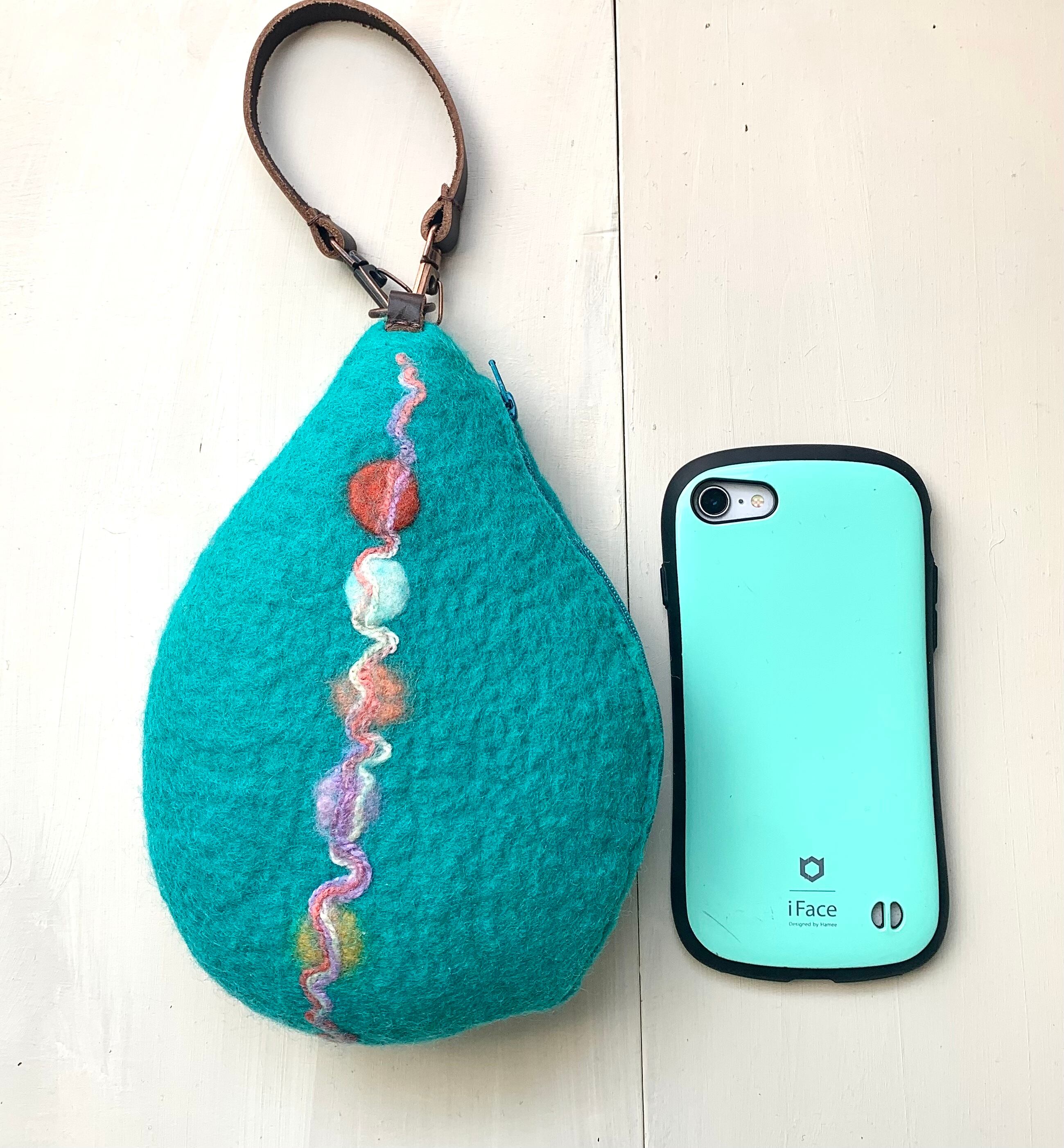 羊毛フェルトのカラフルなしずくポシェット(セルリアン)