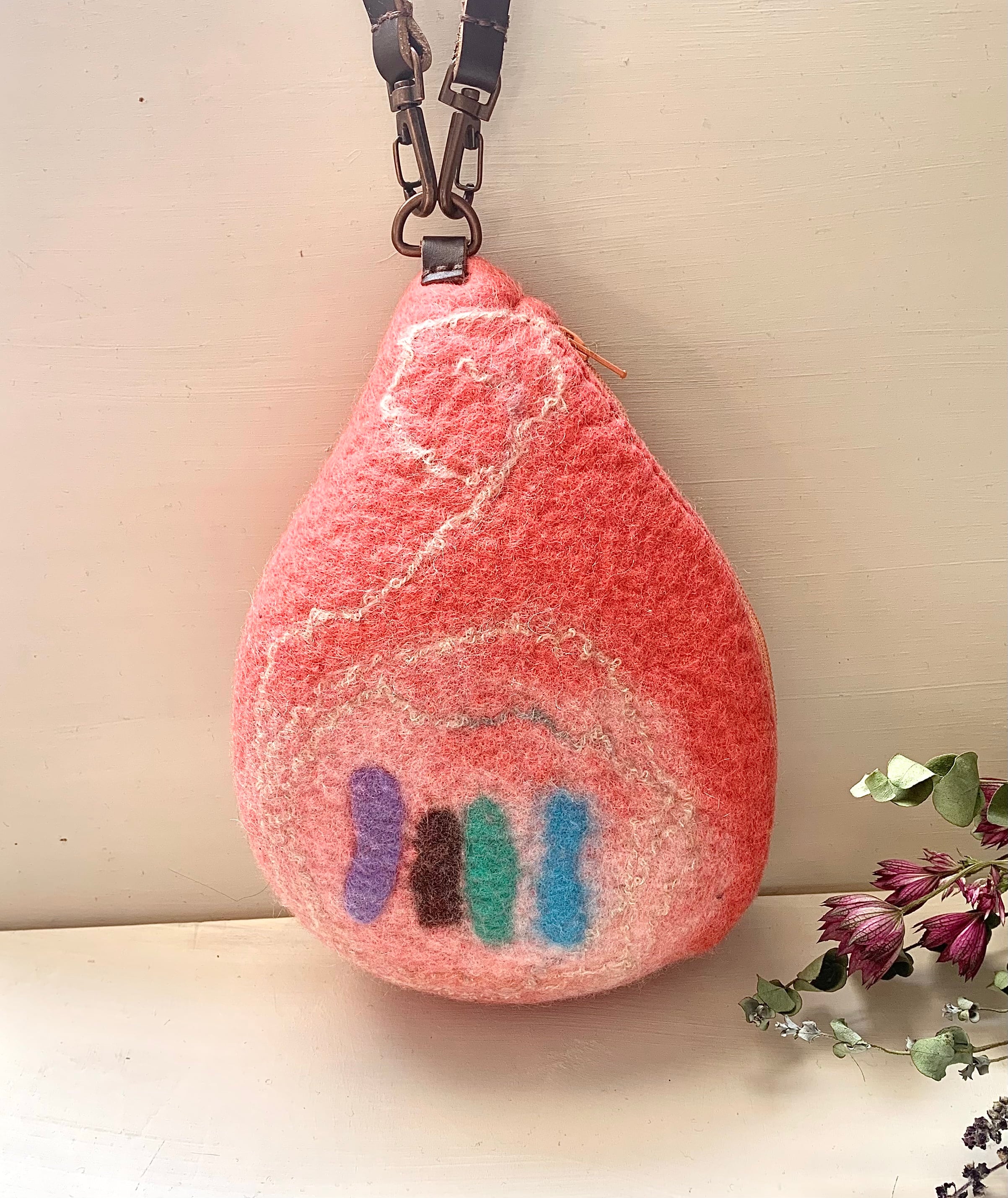 ポシェット本体:羊毛メリノウール100% (羊毛から手作業でフェルト化しています。)