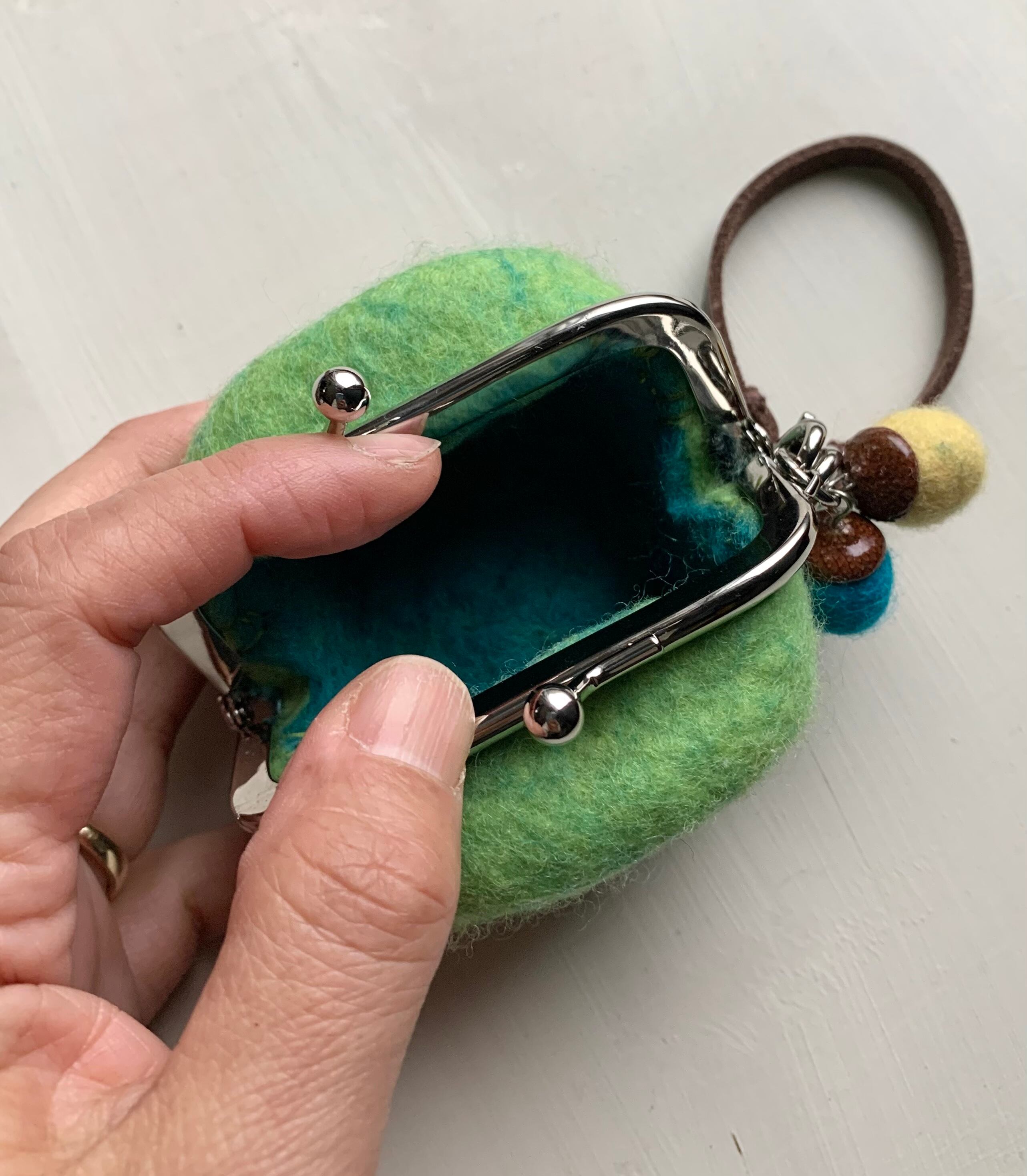 羊毛フェルトの四角いがま口(アップルグリーン)