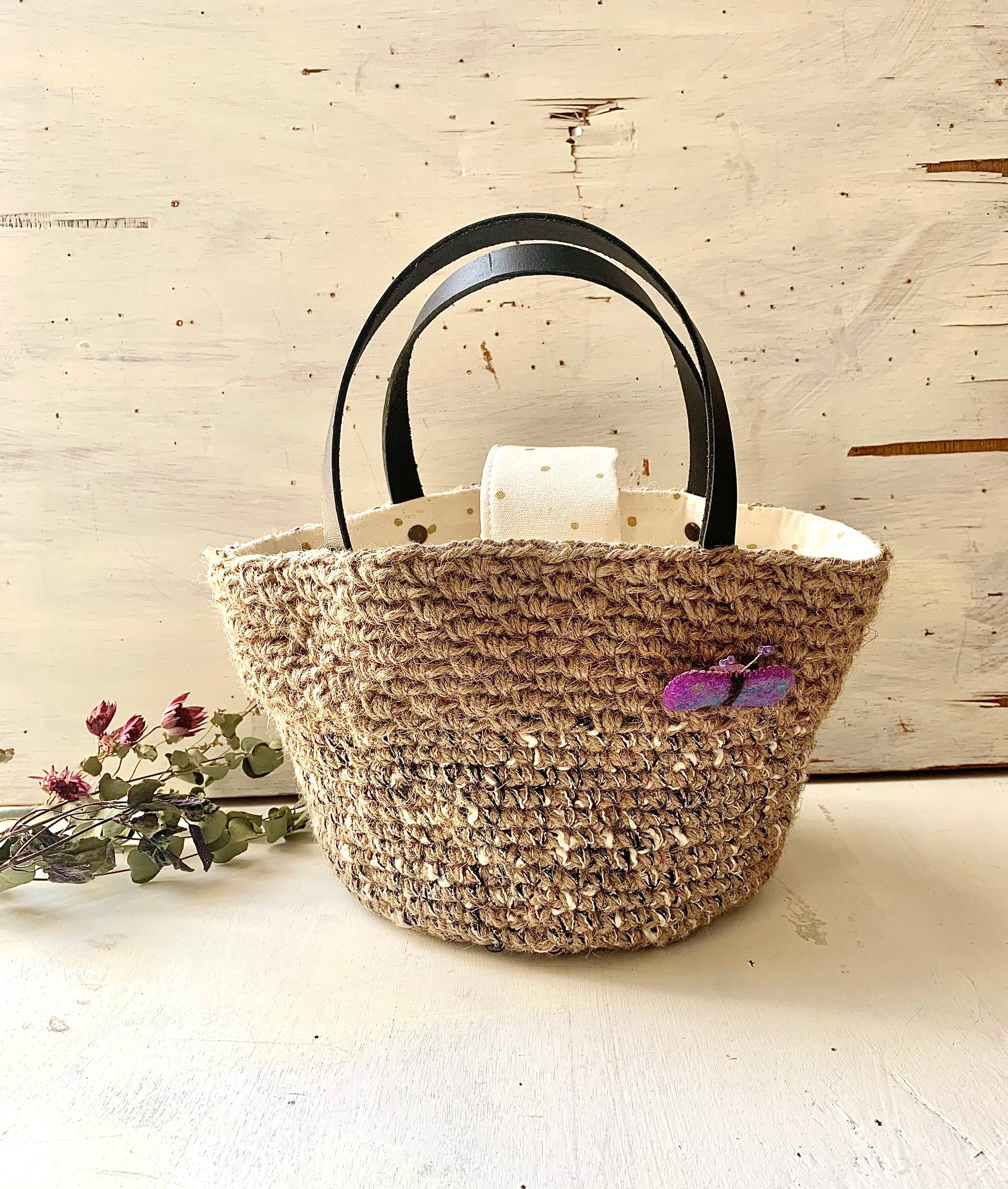 バッグ内側は白に金のドットの綿布使用(一枚布でなく厚めの接着芯をあててあります。)